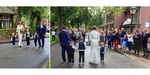 Aankomst bij de trouwlocatie. Leuk idee om als gezin al lopend de gasten te ontmoeten.