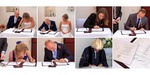 Dit formele moment mag niet ontbreken. Ik heb de volgorde van ondertekenen aangehouden. Het leuke is dat er eerst vier rechtshandigen (foto's boven) hebben getekend en hierna drie linkshandigen (foto's onder). Dit is puur toeval, maar wel leuk om terug te zien.
